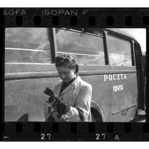 Woman posing with a mail truck